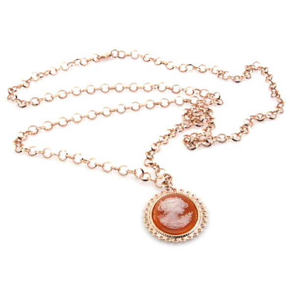 Collana in bronzo donna con cammeo cm 70 dorata anallergica nickel free