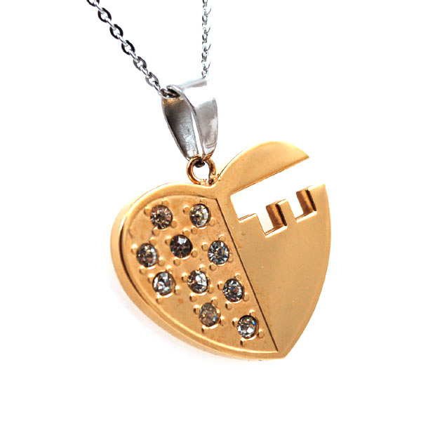 Collana con cuore in acciaio dorato con strass bianchi catenina fino a 50 cm lungo mm 32 largo mm 27
