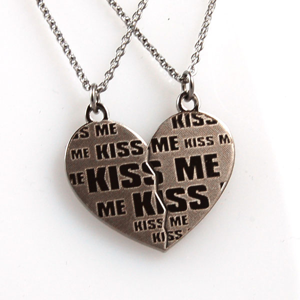 Collana con cuore che si spezza con scritta kiss me