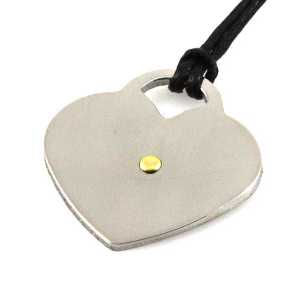Collana con cuore in acciaio punto in oro 18 kt stainless steel laccetto nero lunga mm 28 larga mm 27
