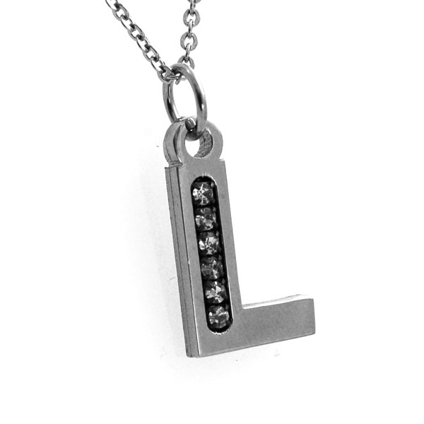 Collana con iniziale lettera l in acciaio
